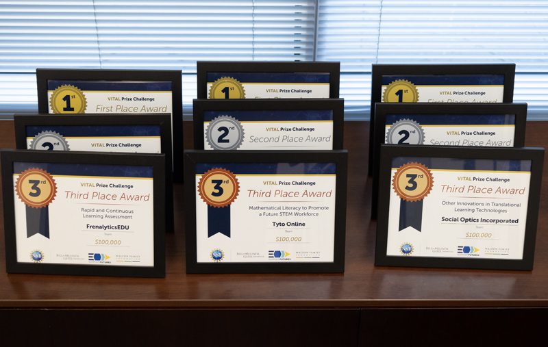 The VITAL Prize Challenge was designed to develop and support early-stage concepts and ideas based on equitable, innovative uses of technology and research across three tracks: Rapid and Continuous Learning Assessment, Mathematical Literacy to Promote a Future STEM Workforce, and Other Innovations in Translational Learning Technologies.